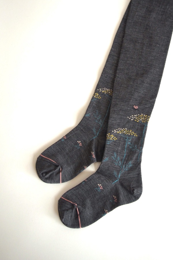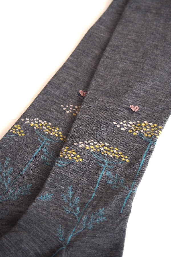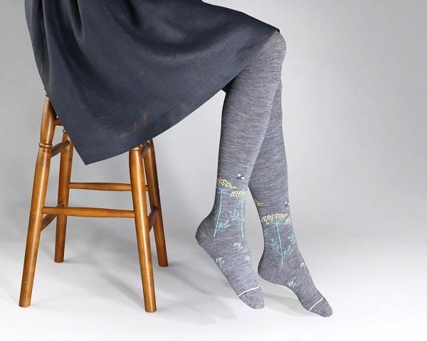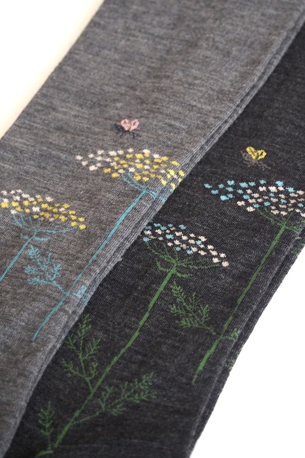 野原に自由に咲きほこる「ワイルドキャロット」の花を描いたタイツ。